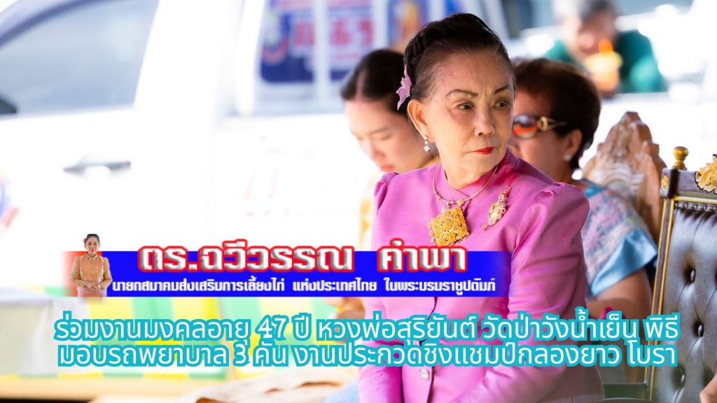 ดร.ฉวีวรรณ คำพา ร่วมงานมงคลอายุ 47 ปี หลวงพ่อสุริยันต์ วัดป่าวังน้ำเย็น พิธีมอบรถพยาบาล 3 คัน งานประกวดชิงแชมป์กลองยาว โบราณ
